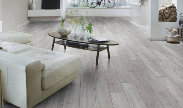 Ламінат KronoOriginal Дуб Рокфорд 5946 з колекції Super Natural Classic – це універсальне рішення для створення стильного та затишного інтер'єру. Бежево-сірий відтінок дуба та односмуговий дизайн під дерево легко впишуться як в сучасні, так і в класичні простори, додаючи їм легкості та вишуканості.