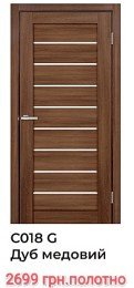 Двері міжкімнатні DOORS Smart С018G Дуб медовий ПВХ, ціна вказана зі знижкою за дверне полотно в розмірі 600; 700; 800; 900 х 2000 мм.