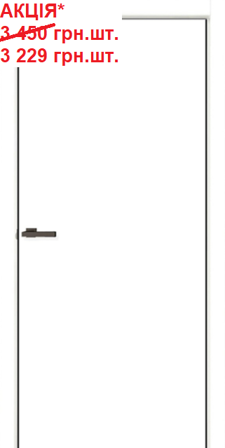 Двері міжкімнатні OMiC FLAT 01B ПВХ Білий Емалекс, чорний торець полотна на 2 бокові сторони ABS пластик, ціна вказана зі знижкою за дверне полотно в розмірі 600; 700; 800; 900 х 2000 мм.