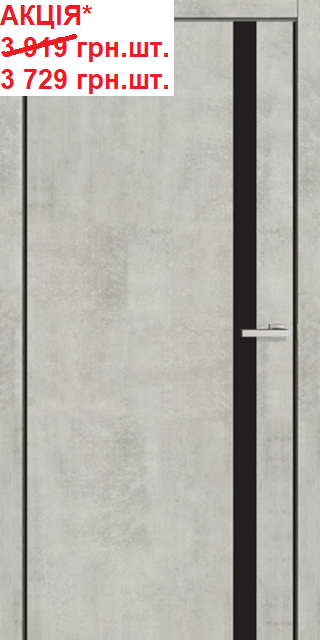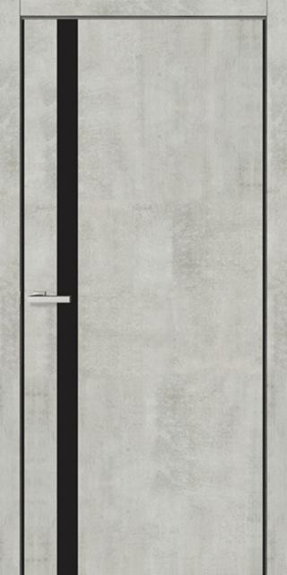 Двері міжкімнатні OMiC FLAT 02B ПВХ Цемент чорне скло чорний торець полотна на 2 бокові сторони ABS пластик, ціна вказана зі знижкою за дверне полотно в розмірі 600; 700; 800; 900 х 2000 мм.