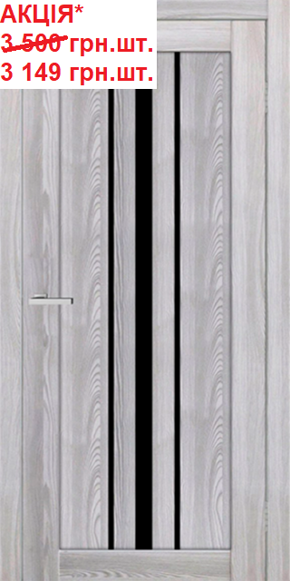 Двері міжкімнатні DOORS Smart С050 BG Ясен сизий ПВХ, чорне скло, ціна вказана зі знижкою за дверне полотно в розмірі 600; 700; 800; 900 х 2000 мм.