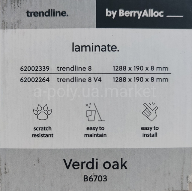 Ламінат BERRY ALLOC Trendline Verdi Oak B6703 товщина 8 мм 32 клас зносостійкості з фаскою V4, продаж кратно упаковкам.