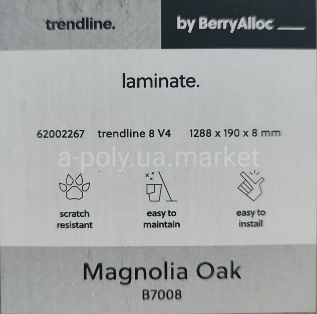 Ламінат BERRY ALLOC Trendline Magnolia Oak B7008 товщина 8 мм 32 клас зносостійкості з фаскою V4, продаж кратно упаковкам.