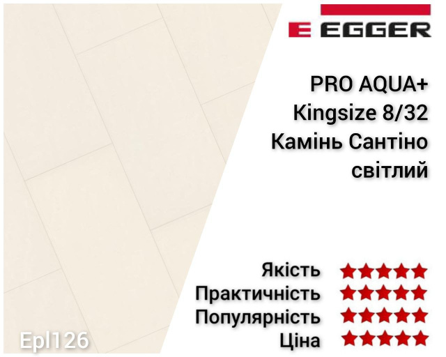 Ламінат вологостійкий EGGER Камінь Сантіно світлий EPL126 товщина 8 мм 32 клас зносостійкості з фаскою V5, продаж кратно упаковкам.